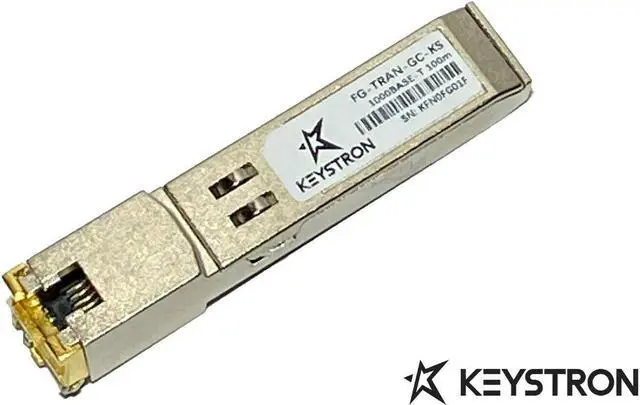Keystron's FG-TRAN-GC-KS is a Fortinet® compatible 1000Base-T SFP Optical Transceiver for seamless network integration. Our transceivers perform identically to Fortinet® original transceivers and are 100% compatible with other OEM and third party transceivers. The FG-TRAN-GC-KS is 100% MSA (Multi-Source Agreement) compliant. All Keystron's transceivers are tested for 100% functionality and guaranteed compatible for outstanding network performance.