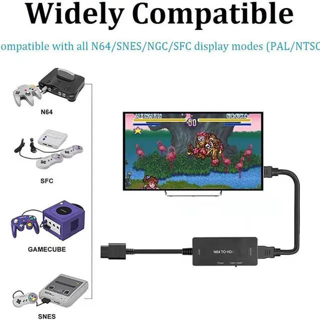 Bring your classic Nintendo 64, SNES, SFC, and GameCube games to modern HDTVs with this N64 to HDMI Adapter. Designed for retro gaming enthusiasts, this compact converter transforms analog video output from classic consoles to full digital HDMI formatdelivering crisp, clear video and audio on large screen displays with no signal loss.