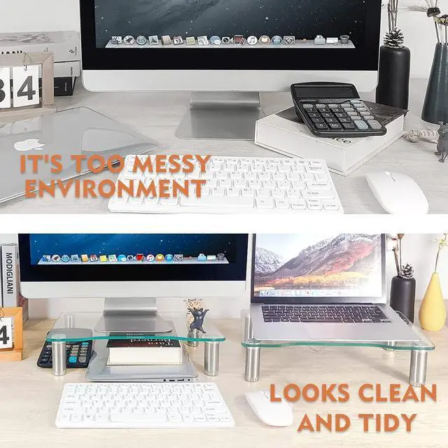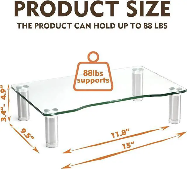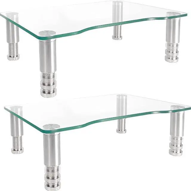 Easy Assembly and widely usage: Combine the tempered glass and stainless steel legs through the screw, 2 Pack, Can be used in Monitor Riser, Printer Stand, Computer Stand, Laptop Riser, Desk Shelf & Xbox one