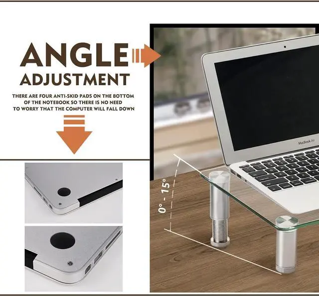 Tilt Function: My computer monitor riser can adjust forward 0-15 degree to put the computer comfortable position