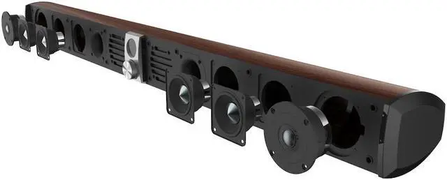 Both the soundbar and the subwoofer are made from solid wood materials, which are produced by a fine process.