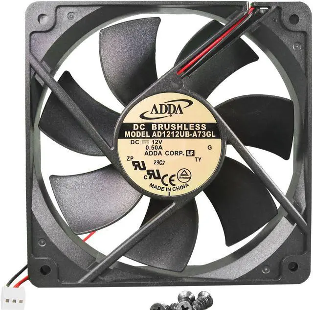 This 120mm x 25mm 12V fan, part number AD1212UB-A71GL has a two ball bearings for long life and a 3 pin (2 wire) motherboard connector.