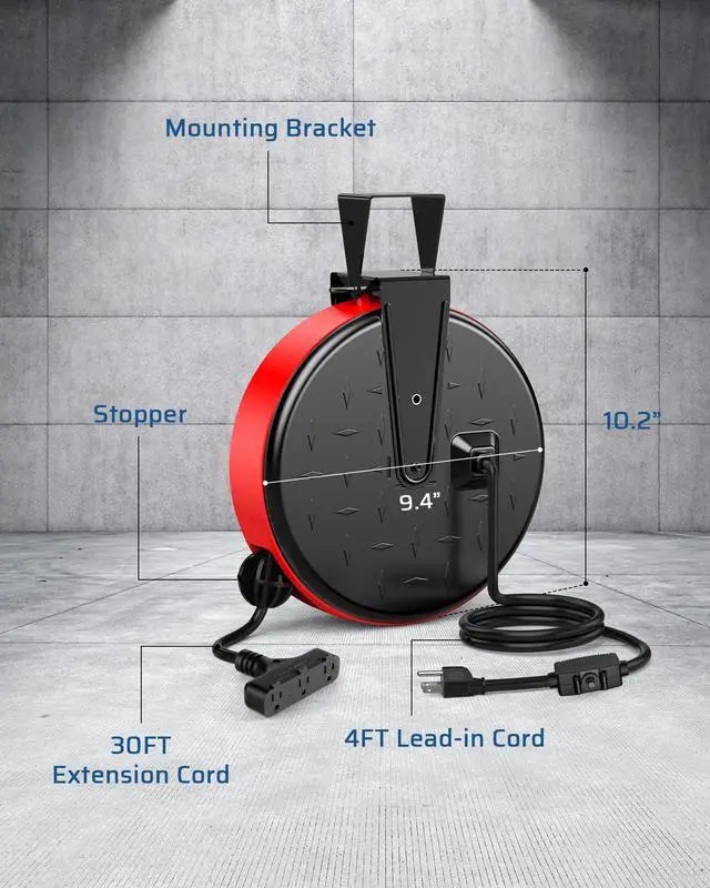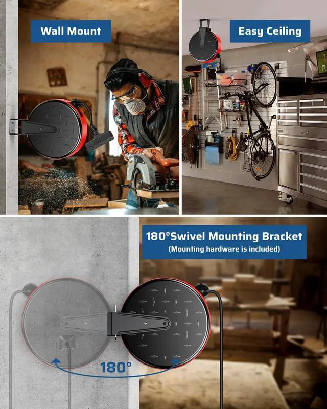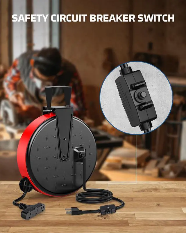 DEWENWILS Retractable Extension Cord Reel for Workshop Garage Wood Shop
