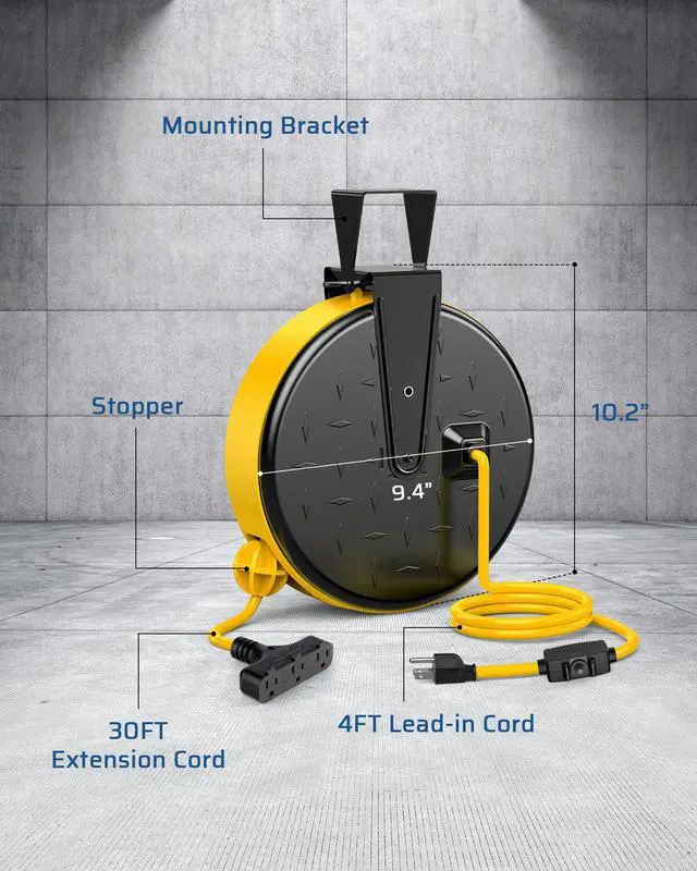 DEWENWILS Retractable Extension Cord Reel for Workshop Garage Wood Shop