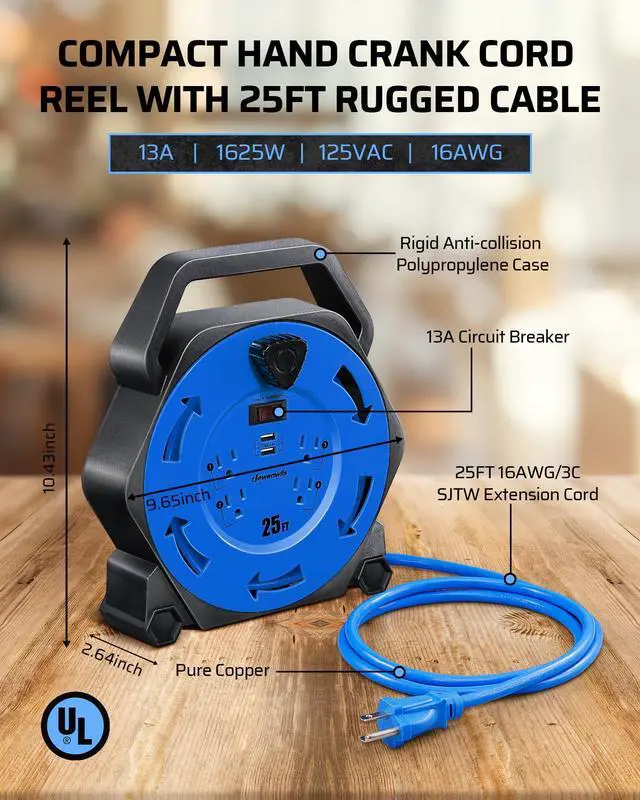 DEWENWILS Retractable Extension Cord Reel for Workshop Garage Wood Shop