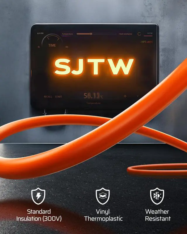 16/3C SJTW Cord: weather-resistant, low-temp flexible, UV, water & acid resistant (good for garages); for indoor or dry locations.
