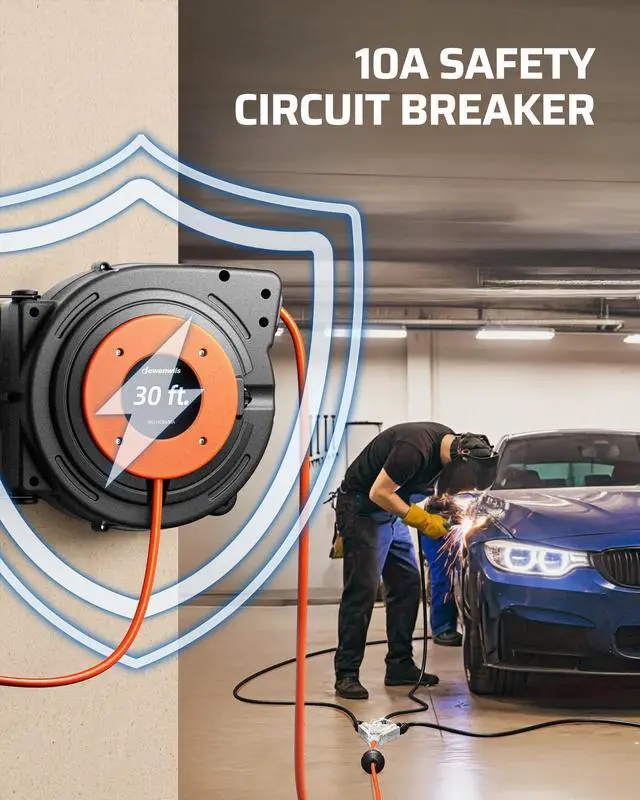 DEWENWILS Retractable Extension Cord Reel for Workshop Garage Wood Shop