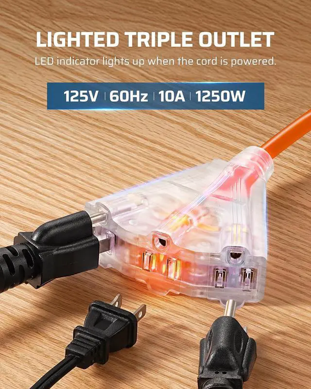 Crafted with a flame-defying, tangle-repelling, and abrasion-banishing 16AWG/3C SJTW retractable extension cord.