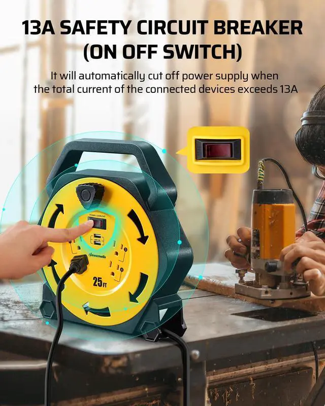 DEWENWILS Retractable Extension Cord Reel for Workshop Garage Wood Shop