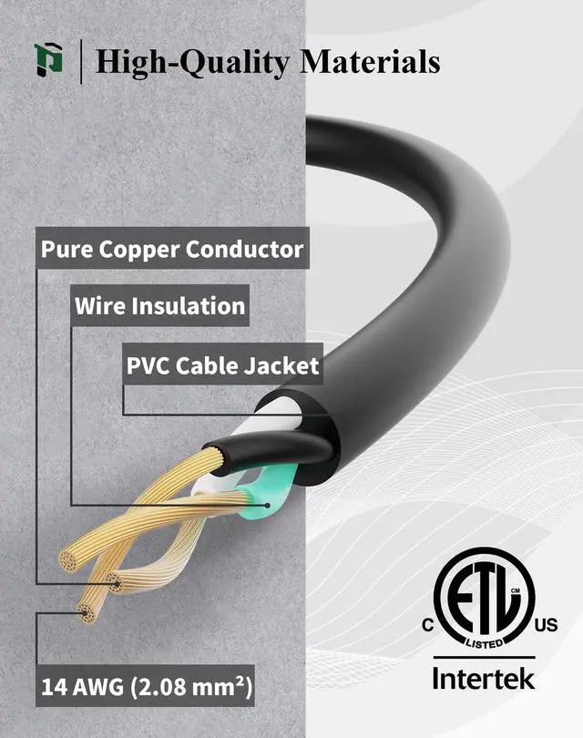 PLUGTUL 50FT Outdoor Extension Cord with Multiple Outlets, 14 Gauge, 3-Outlet, SJTW, 15A 14AWG 1875W SJTW, ETL Listed - Great for Garage, Garden and Home, Black