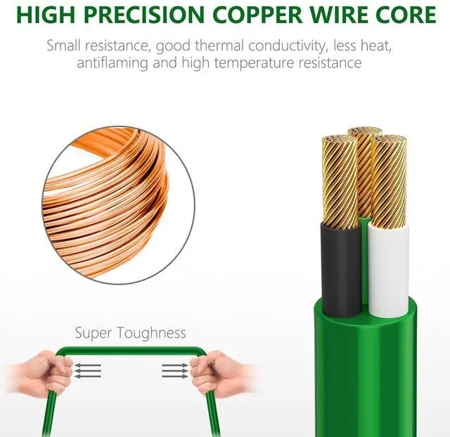 Providing highest quality with a Sturdy Long-Lasting Construction, durable vinyl covering insulating and protecting the cord's conducting wires, plus resists moisture, abrasion, and the damaging effects of sunlight, and resistant to extreme temperature which will not crack or deteriorate.