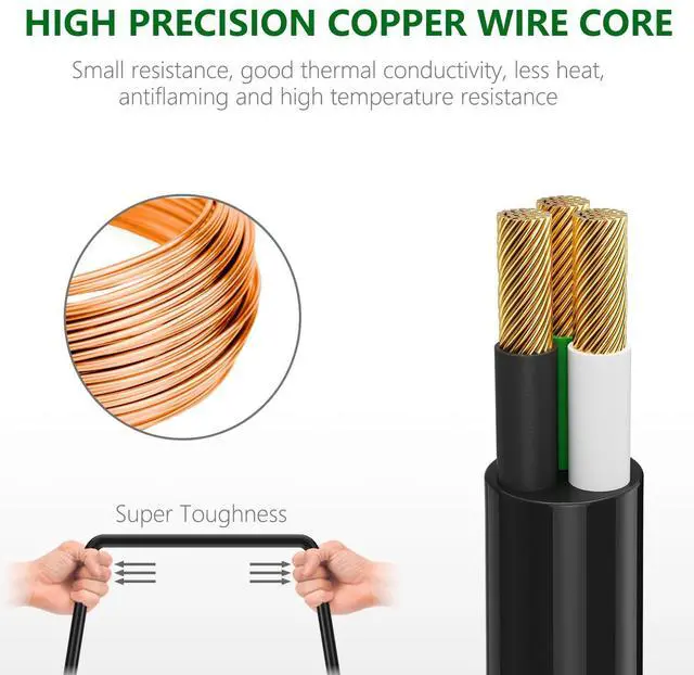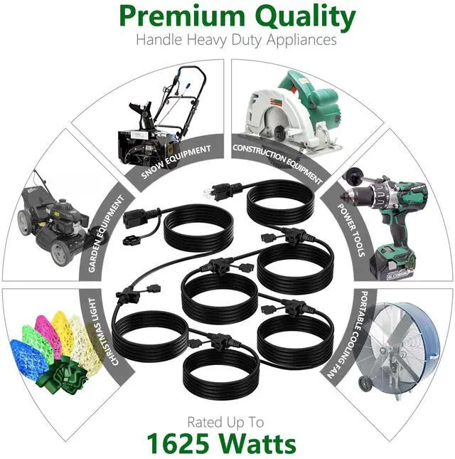 Providing highest quality with a Sturdy Long-Lasting Construction, durable vinyl covering insulating and protecting the cord's conducting wires, plus resists moisture, abrasion, and the damaging effects of sunlight, and resistant to extreme temperature which will not crack or deteriorate.