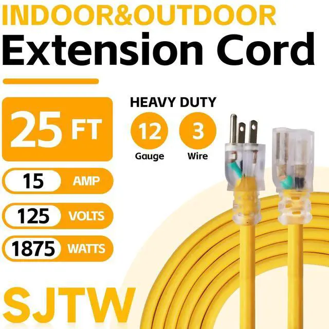 The 12 gauge extension cord ensures efficient power delivery without voltage drops, making it ideal for high-power appliances and tools.