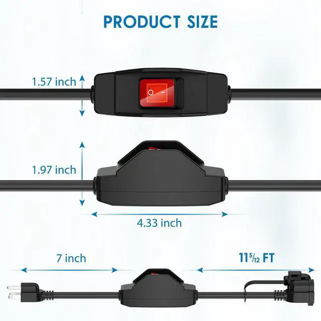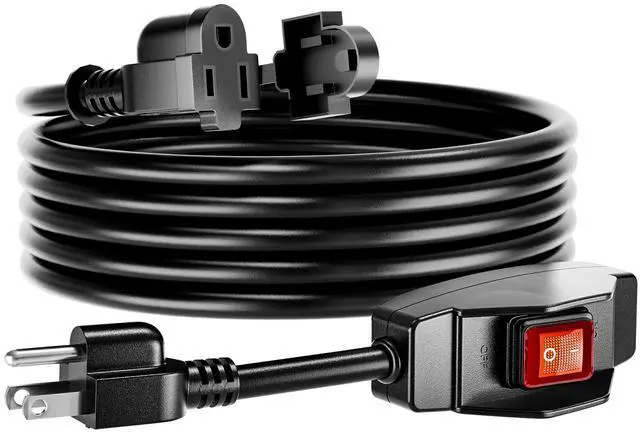 The extension cord is equipped with powerful 15A 125V NEMA 5-15P to NEMA 5-15R grounded outlet plugs. It‘s compatible with a wide range of standard electrical equipment, including string lights, lamps, printers, patio fountain, RV fans and more.