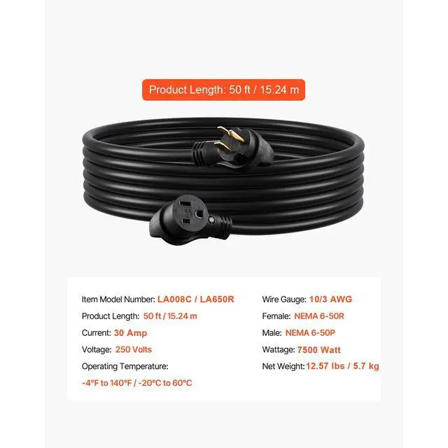 Welder Extension Cord, 30 Amp 50 ft, Extension Cord for Portable Welders, NEMA 6-50P, 10/3 AWG, 250V, 7500W Heavy Duty Pure Copper Welder Cable, for Outdoor MIG TIG Plasma, STW Weather-proof