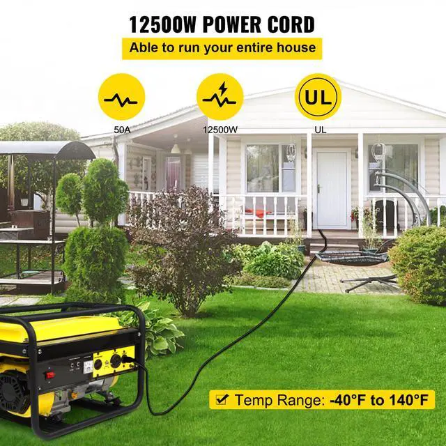 15Ft 50 Amp Generator Extension Cord 4 Wire 6 Gauge STW 6/3+8/1 Generator Cord 125V 250V UL Listed Generator Power Cord N14-50P & SS2-50R Portable Handle (15Ft 50 Amp)