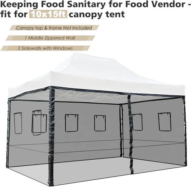 - Sanitary Protection - 4pcs 10 1/12 x 7 1/4 ft mesh sidewalls, fitting for 15x10ft pop up canopy tent, to keep food sanitary for food vendor and offer high visibility for promoting your products (Sidewalls Only)