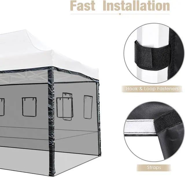 - Fast Installation - with hook & loop fasteners and straps to quickly attach the sidewall to the canopy top and canopy legs