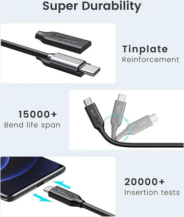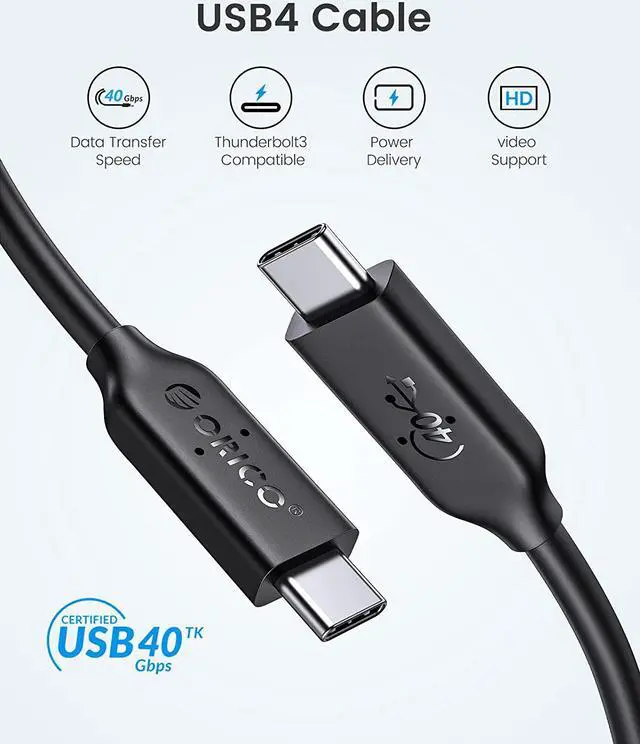 ORICO USB 4 Cable USB-IF Certified USB C Cable HD 8K @60Hz PD100W Fast Charge 40Gbps Data Transfer for Thunderbolt 3 Macbook