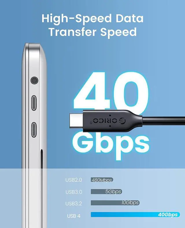 - Super Speed: USB 4 is fully compatible with Thunderbolt 3 transmission protocol, up to 40Gbps. 2GB file can be transferred in 1 second (the transfer rate is about 2500MB/s).
