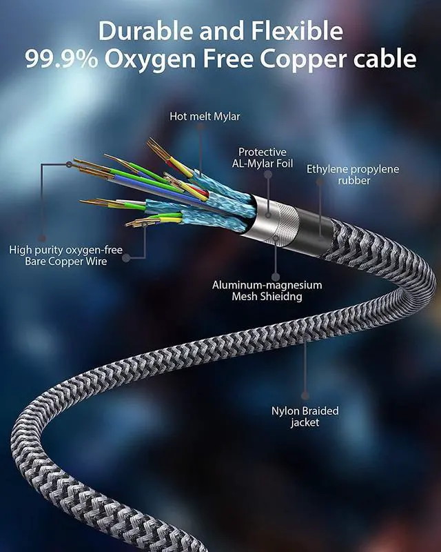 Reliable Anti-interference Capability: Our DisplayPort 1.4 Cable Made of 28AWG Tinned copper with triple-layer shielding to transfer stable video and audio signals. Quality nylon braided jacket with 30000+ bend lifespan provides you with a heavy duty DisplayPort to DisplayPort cable. 24K gold-plated connectors wont tarnish or decrease conductivity over time.