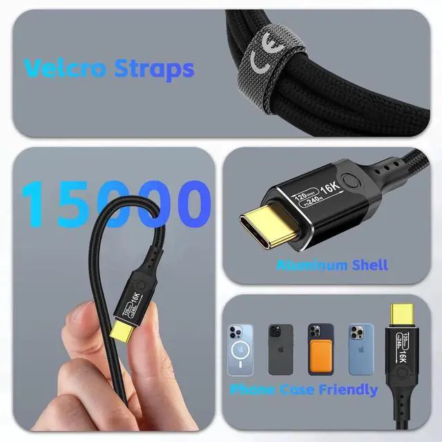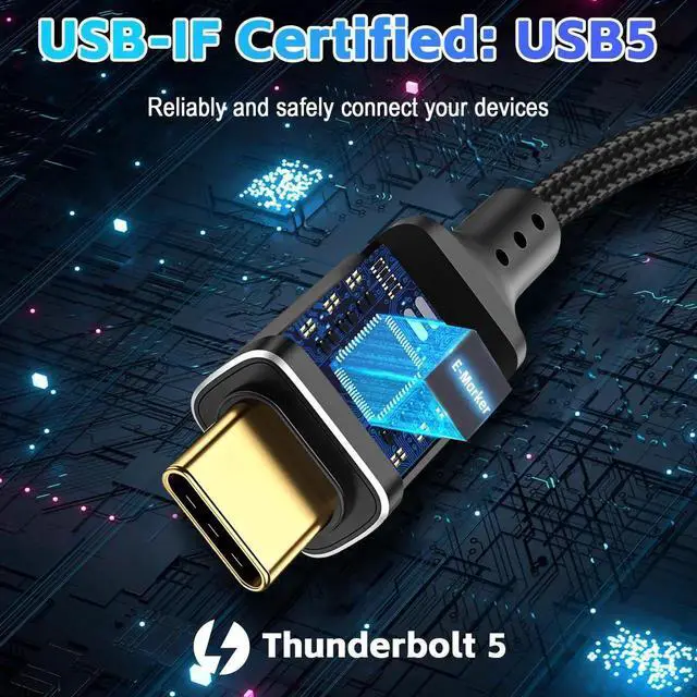 Thunderbolt 5 Cable USB C Data Cord USB4 2.0 High Speed Data Charging Cable
