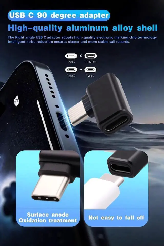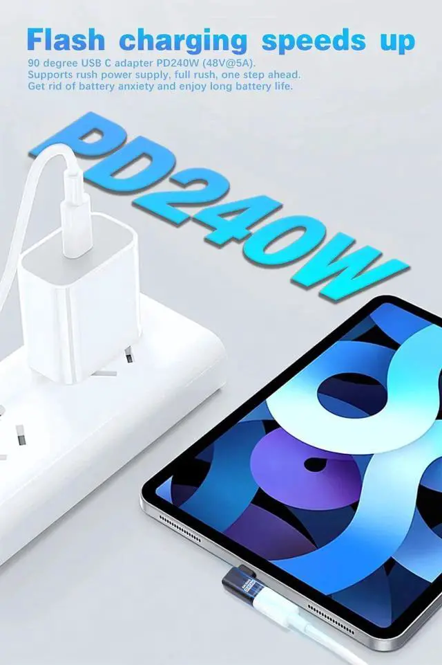 Widely compatible: This USB-C 90 degree adaptre is designed for most Type-C devices. The USB-C to USB-C adapter is compatible with iPad, MacBook, Thunderbolt 5, Thunderbolt 4/3, MacBook Pro, Chromebook, Surface Book, USB-C hubs, Google Pixel, game consoles, hard drives for PD fast charging, etc.