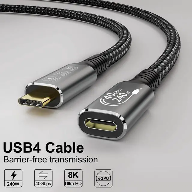 Extend the reach of your USB-C and Thunderbolt devices with this USB4 Extension Cable. Designed for high-performance setups, this male-to-female cable delivers full 40Gbps data transfer, 240W power delivery, and 8K video outputmaking it the perfect companion for Thunderbolt docks, eGPUs, external SSDs, and USB-C hubs. Experience barrier-free transmission with no compromise on speed or stability.