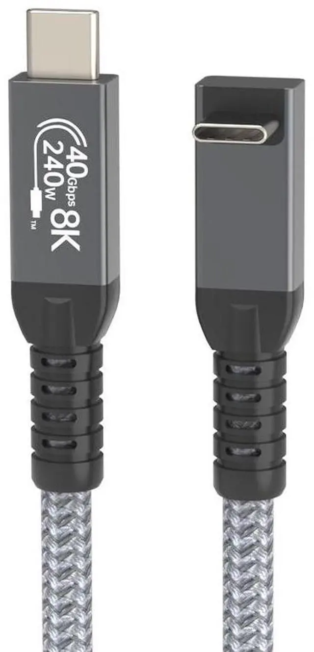 Experience the ultimate in connectivity with this USB4 Right-Angle Cable. Featuring a space-saving 3D right-angle connector and full USB4/Thunderbolt 4 compatibility, this premium cable delivers 40Gbps data transfer, 240W fast charging, and 8K video output. Perfect for laptops, eGPUs, docking stations, and high-performance monitorsone cable for all your needs.