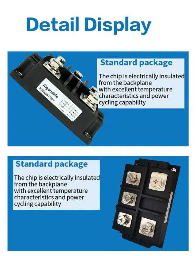 Durable & Easy to Install:The three-phase bridge rectifier has five terminals with a compact and durable structure. Designed for easy mounting and reliable heat dissipation, it performs well under high load and continuous operation environments.