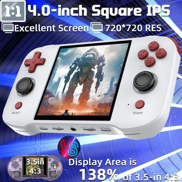 Discover the ultimate in portable gaming with our R46S Console. Featuring a high-resolution IPS OCA 4.0 -inch display with 720*720 1:1 screen ratio, every game comes to life in stunning clarity.