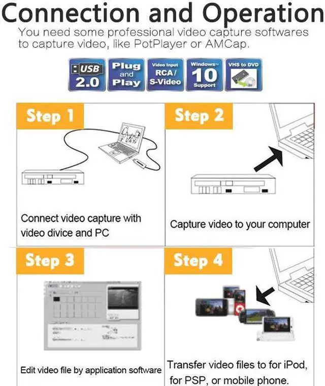 The USB Audio Video Capture, it can capture High-quality audio file directly by USB interface. Now you can have options to record your favorite music, from an analog audio source to some kinds of digital formats onto your computer.