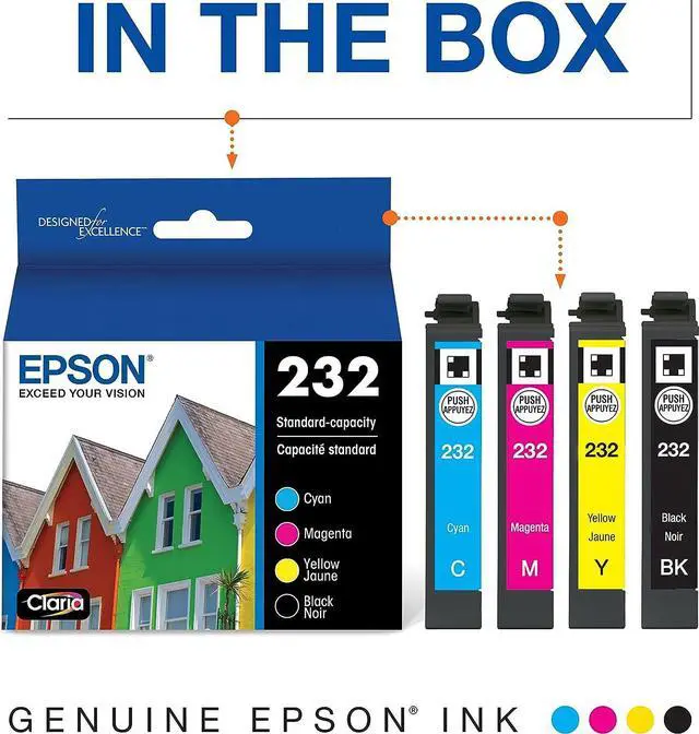 Epson® inks, specialty papers and printers are created to work together to consistently bring you excellent results. Our revolutionary ink technologies deliver brilliant prints. With three individual dye colour ink cartridges (cyan, magenta, yellow) and one pigment black ink cartridge, this Claria Ink set delivers vibrant colour and sharp text for long-lasting, high-quality results.