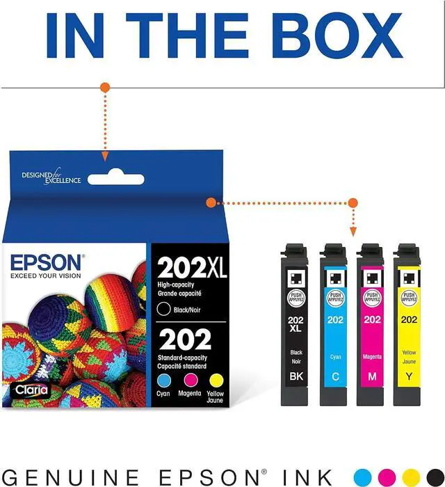 With three individual dye-colour ink cartridges (Cyan, Magenta, Yellow) and one pigment Black ink cartridge, this Claria Ink set delivers vibrant colour and sharp text for long-lasting, high-quality results.