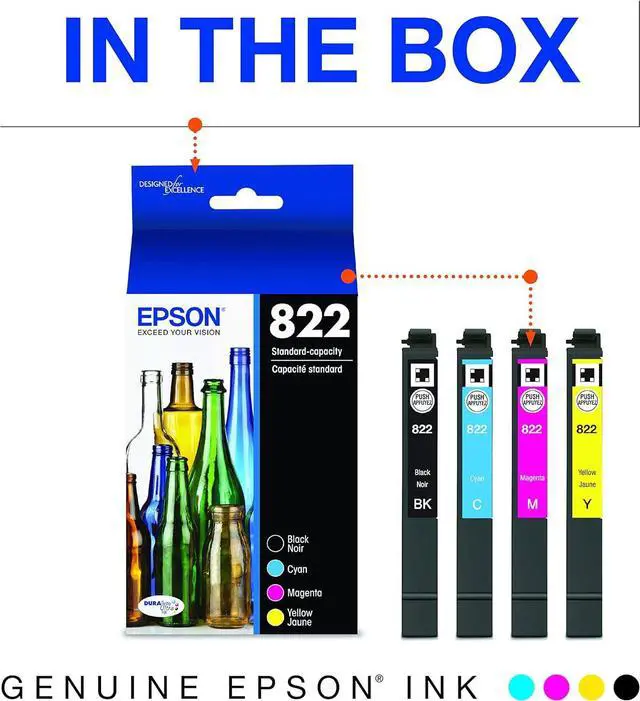 Formulated with fast-drying pigment ink designed for high-speed print jobs, Epson DURABrite Ultra Standard-capacity ink cartridges deliver sharp text, bright colors and print-shop-quality results.