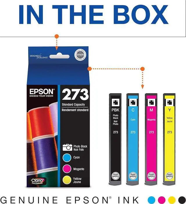 Versatile ink for great images and sharp text. Claria Premium 4 dye colours (Photo Black, Cyan, Magenta, Yellow) and 1 pigment black ink technology delivers great images, including stunning photos and sharp text, that last for more than 200 years.