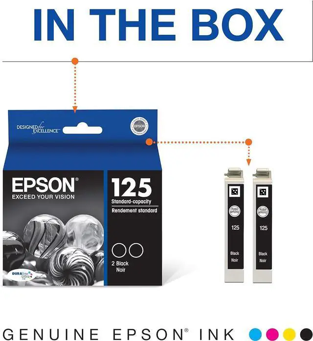 Epson T125120-D2 DURABrite Ultra Black Dual Pack Standard Capacity Cartridge Ink. Better quality than the lab. Worry-free handling - smudge, fade and water resistant prints. Convenient individual ink cartridges.