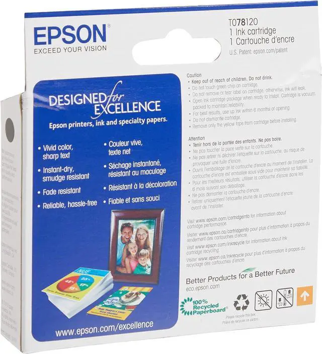 Epson T078120 Claria Hi-Definition 78 Standard-capacity Inkjet Cartridge -Black. Claria Hi-Definition Inks provide true-to-life colors for printing your best shots. Smudge, scratch, water and fade resistant for durable prints. Quick-drying inks make handling photos worry-free.