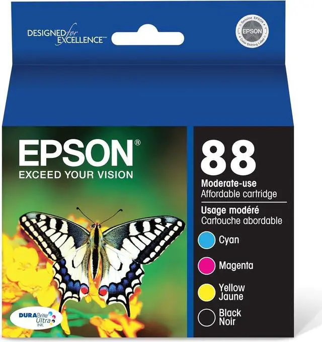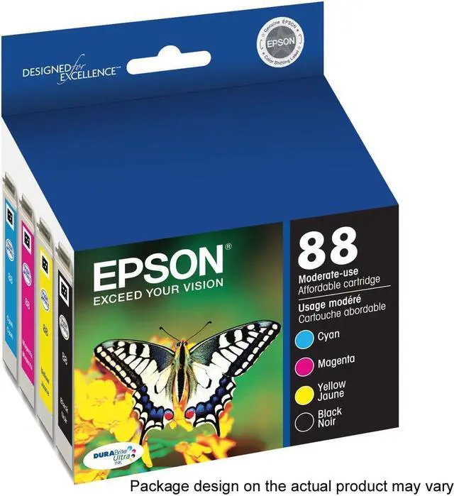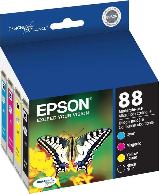 Brand Epson, Model T088120-BCS. Product Condition: Original, Packaged Quantity: 4 / Pack, Product Type: Ink Cartridge,. Print Technology: Inkjet, Print Color: Cyan, Print Color: Black, Print Color: Yellow, Print Color: Magenta,.