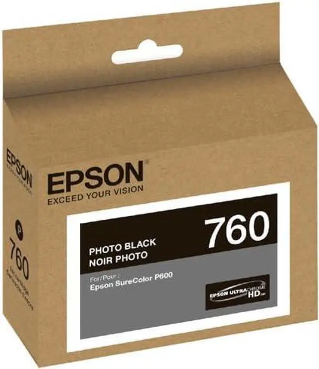 Epson T760120 ultra chrome HD photo Black standard capacity cartridge ink. New nine-color Epson ultra chrome HD inks for clear and vibrant prints. New photo Black pigment ink, 1.5x denser than previous generation. Convenient, 25.9 ml nine-cartridge ink set for improved productivity.
