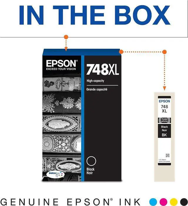 Ideal for business printing, this ink delivers crisp black text and bright, vivid colors for any presentation. A fast-drying pigment ink, Epson's DURABrite Pro Ink produces smudge, fade and water resistant prints for worry-free handling.