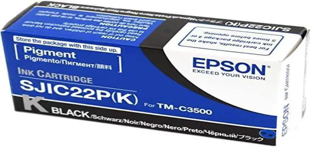 Epson Black pigment ink cartridge SJIC22P which is used with the Epsom TM-C3500/3510/3520 color label printers