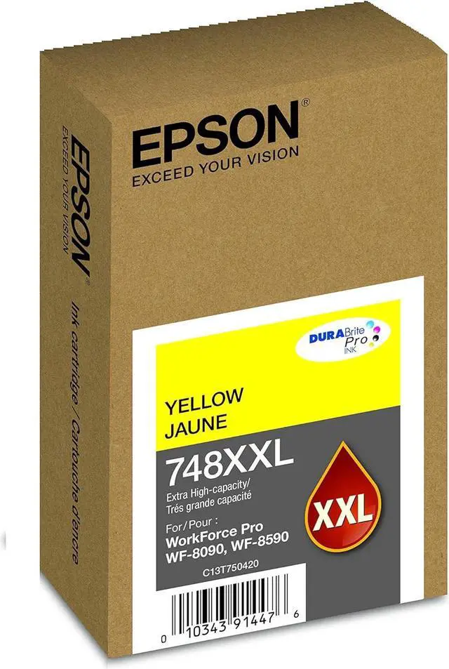 Epson (748) WF-8090 8590 DURABrite Pro Extra High Capacity Yellow Ink Cartridge (7 000 Yield) . This product is manufactured in Indonesia. Quality based accessories and parts.