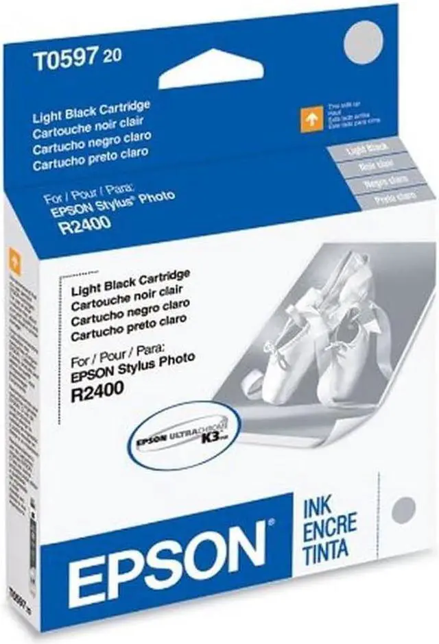 EPSON T059720 Light Black Ink Cartridge - Stylus Photo R2400. With its expanded color gamut, this cartridge can reproduce three-dimensional life-like qualities with a stunning photographic feel. Convenient individual inks allow you to replace only those needed. Pigment-based for superior resistance to water, fading and smudging.