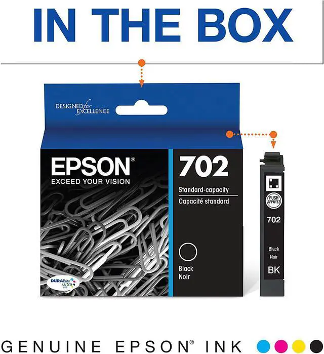 Epson T702120 DURABrite Ultra Black Standard Capacity Cartridge Ink. Better quality than the lab. Worry-free handling. Convenient individual ink cartridges.