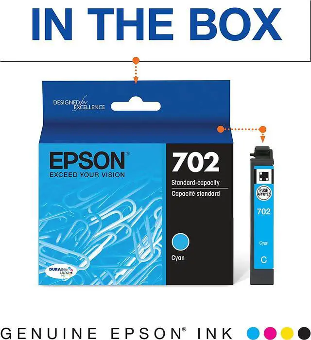 Epson T702220 DURABrite Ultra Cyan Standard Capacity Cartridge Ink. Better quality than the lab. Worry-free handling. Convenient individual ink cartridges.