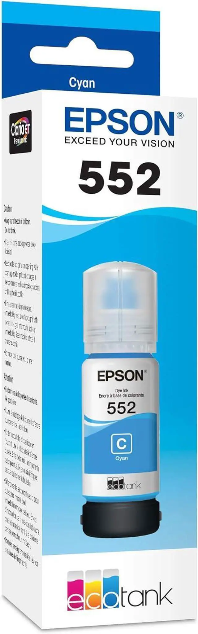 EPSON 552 EcoTank Ink Ultra-high Capacity Bottle Cyan (T552220-S) Works with EcoTank Photo ET-8500, ET-8550