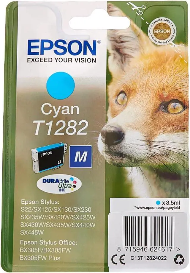 Single pack Cyan T1282 DURABrite Ultra Ink produces business-quality text documents and lab-quality photos with every print that not only looks good, but also smudge, water and fade resistant.