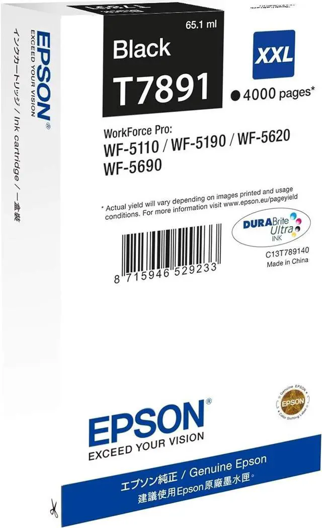 Epson T7891 - XXL Size - Black - Original - Print Cartridge - for Workforce Pro WF-5110DW, WF-5190DW, WF-5620DWF, WF-569