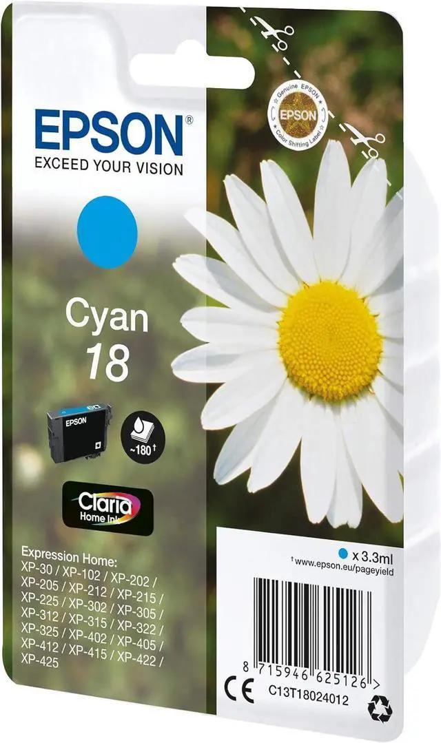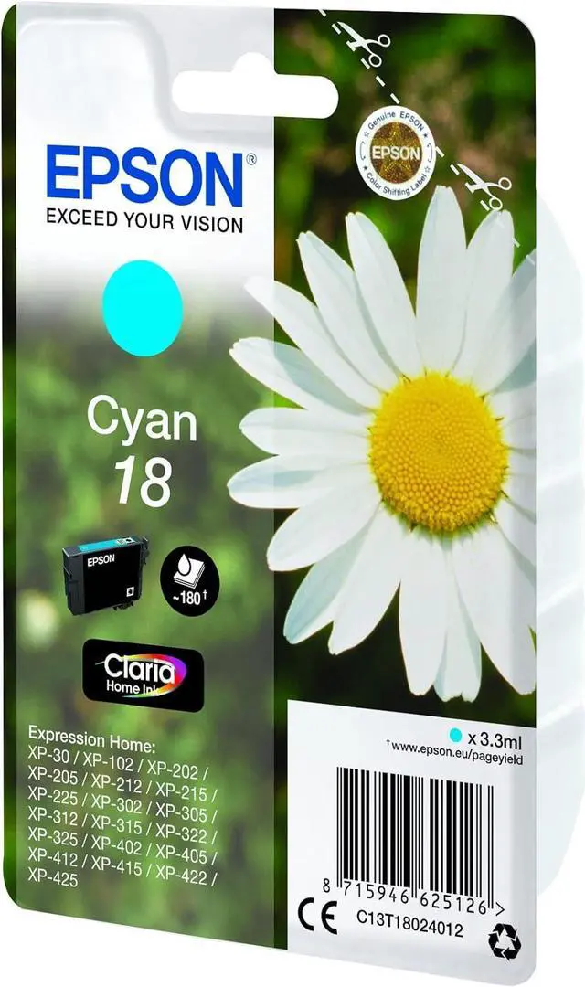 Epson 18 - Print cartridge - 1 x cyan - 180 pages - for Epson MUFC Printer, Expression Home XP-102, 202, 205, 30, 302, 305, 402, 405